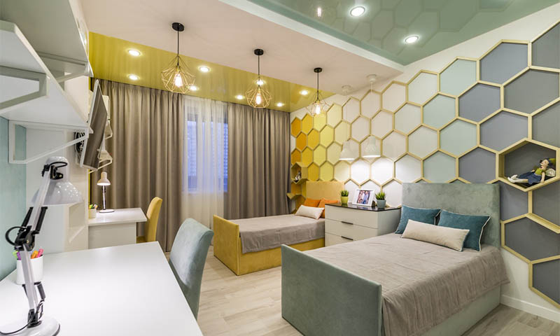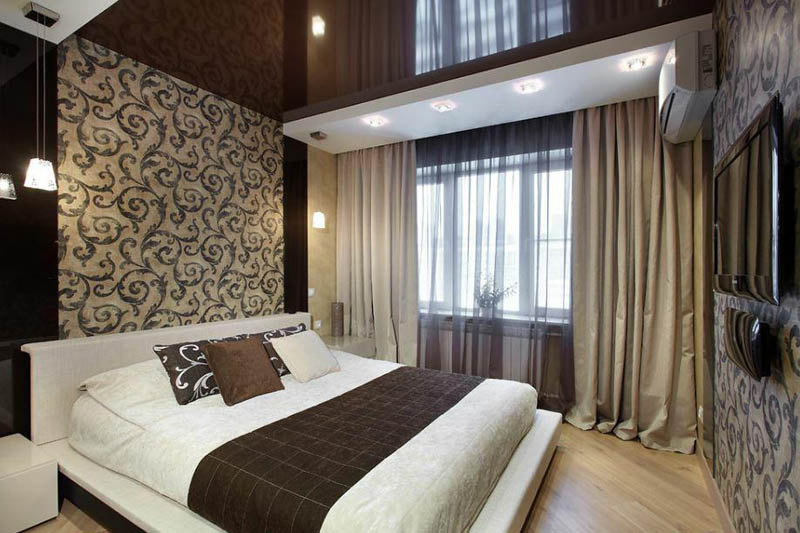 Blizgios įtempiamos lubos miegamajame S =11,8 m2
