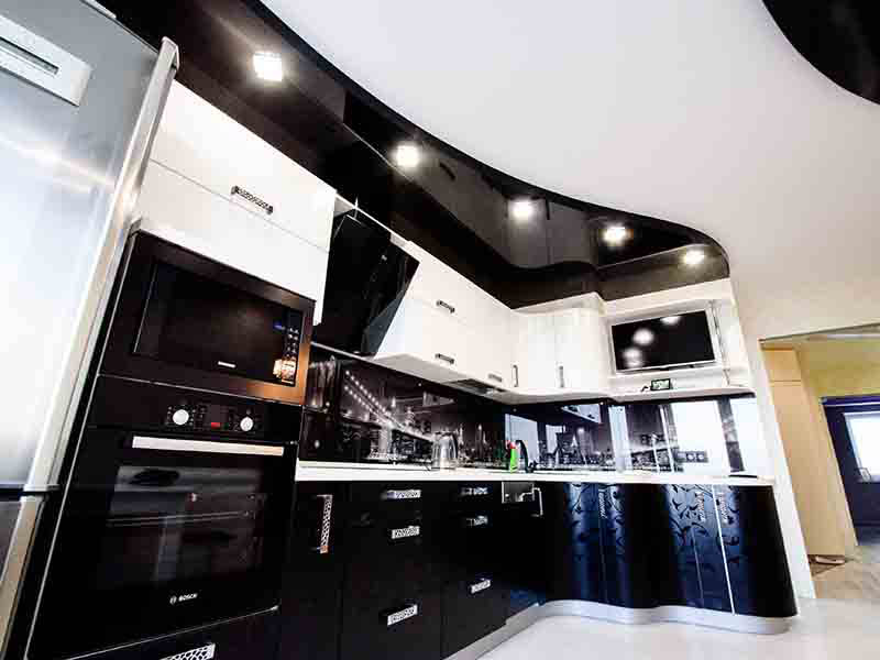 Dažniausei į virtuvę yra montuojamos: Dvieju lygiu lubos su apšvetimu ir be. Lubos su nuotraukos spausdinimu, fakturines bei plaukiajančios lubos.