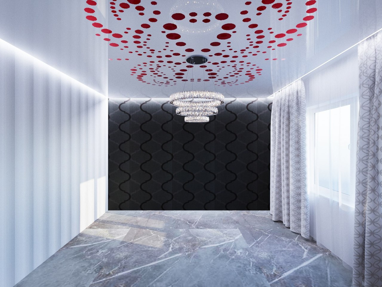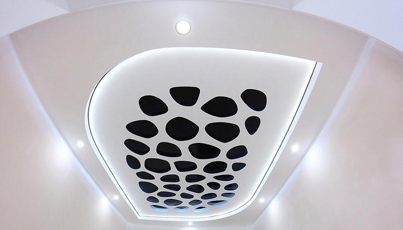 Dėka to kad dvieju lygiu lubos ir perforacija duoda apimties, o už tai kad atsiranda natiralus šešelei ir veidrodinis atspindys susidaro vizualus 3D efektas