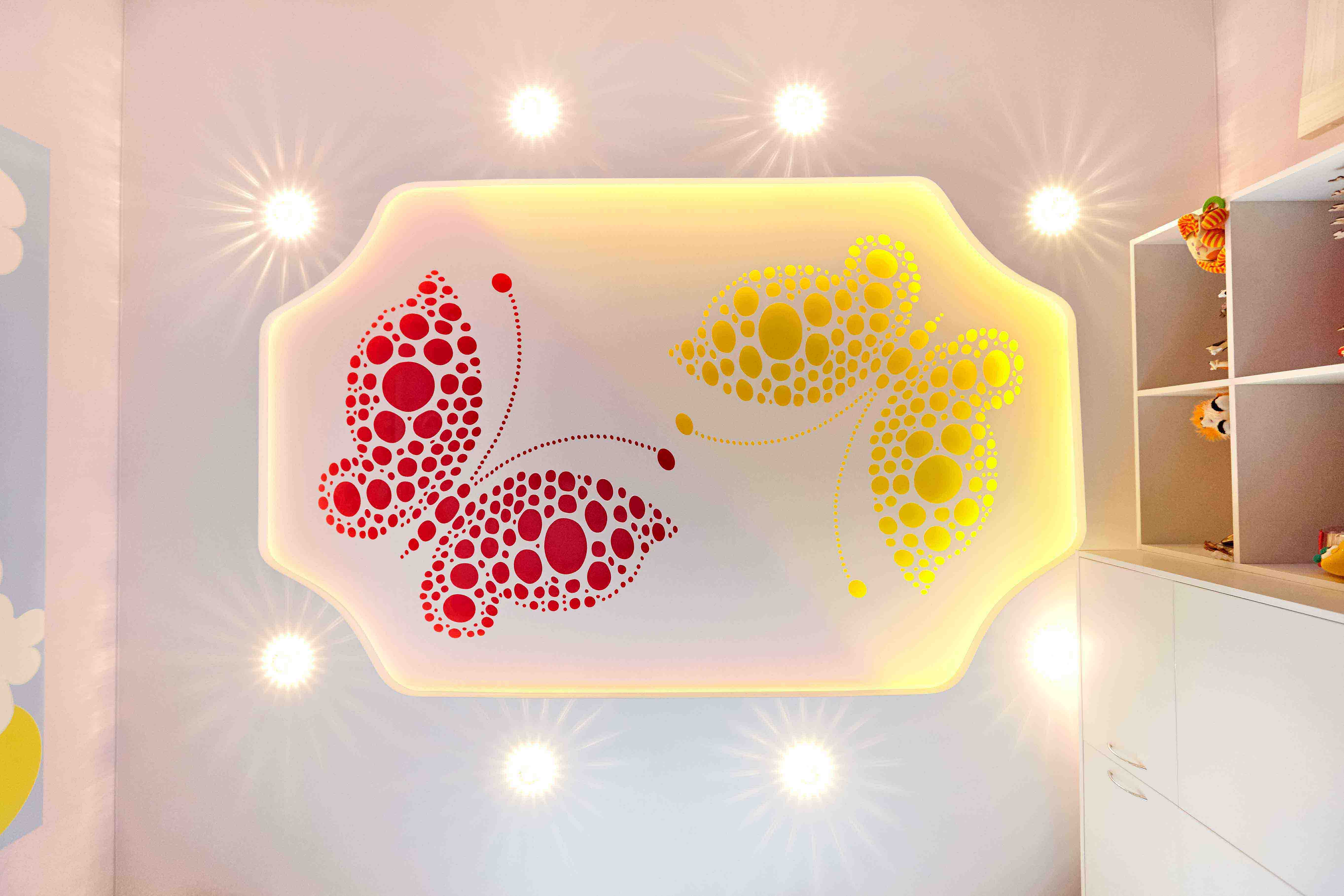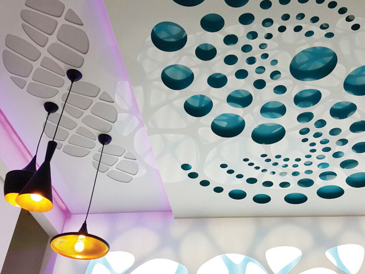Šiu lūbų yoatumai yra dekorativines išpjovos ant įtemptu lūbų. Galima pavaizduoti geles, figūras, drugelius, menuli arba bet ka kita. Žaidžiant su šviesa, menine įšpjova ir atspindžeis galima sukurti tema kuri kartosis jūsų interjere. Išsirenkant bet kuri piešini iš musu katalogo, jus gaunate gražiausia interjera, sukurianti komforta ir gera nuotaika jūsų namuose. Piešini galima kombinuoti tarpusavyje, dauginti ir maštabuoti.