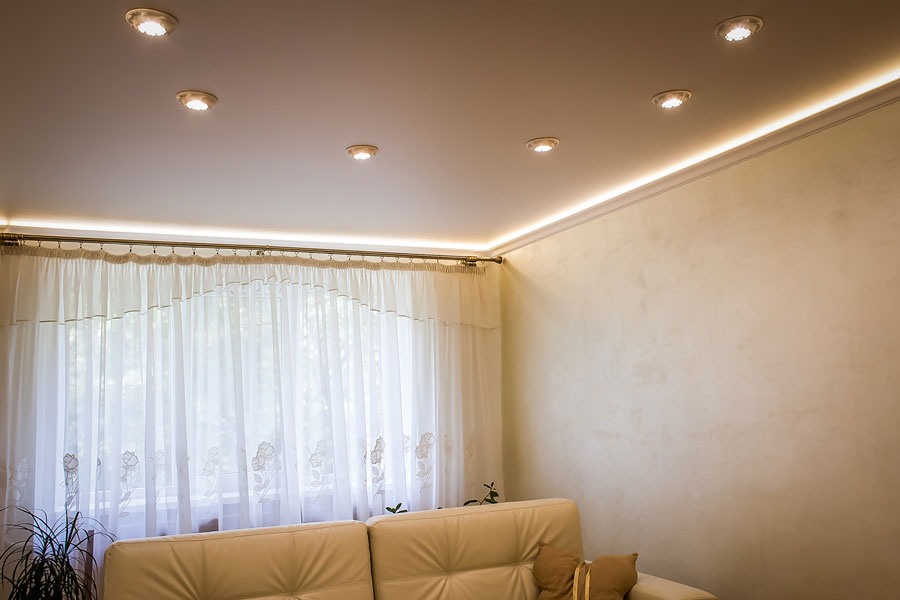 LED juostu instaliacija į nišas, keliu lygiu lubu apšvetimui